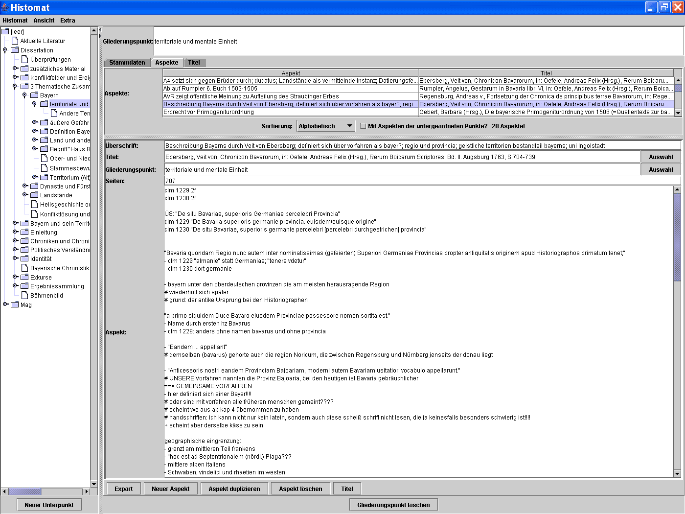Histomat ist eine kombinierte Literatur- und Exzerptverwaltung zur systematischen und effizienten Erstellung geisteswissenschaftlicher Untersuchungen.